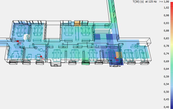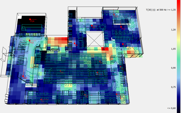 • Programme : étude du confort acoustique des zones de bureau « open space » du bâtiment situé boulevard du Jardin Botanique 20 à Bruxelles, soit 3.000m² répartis sur 11 zones. Cette étude a été établie sur base d’une simulation 3D avec le logiciel ODEON.